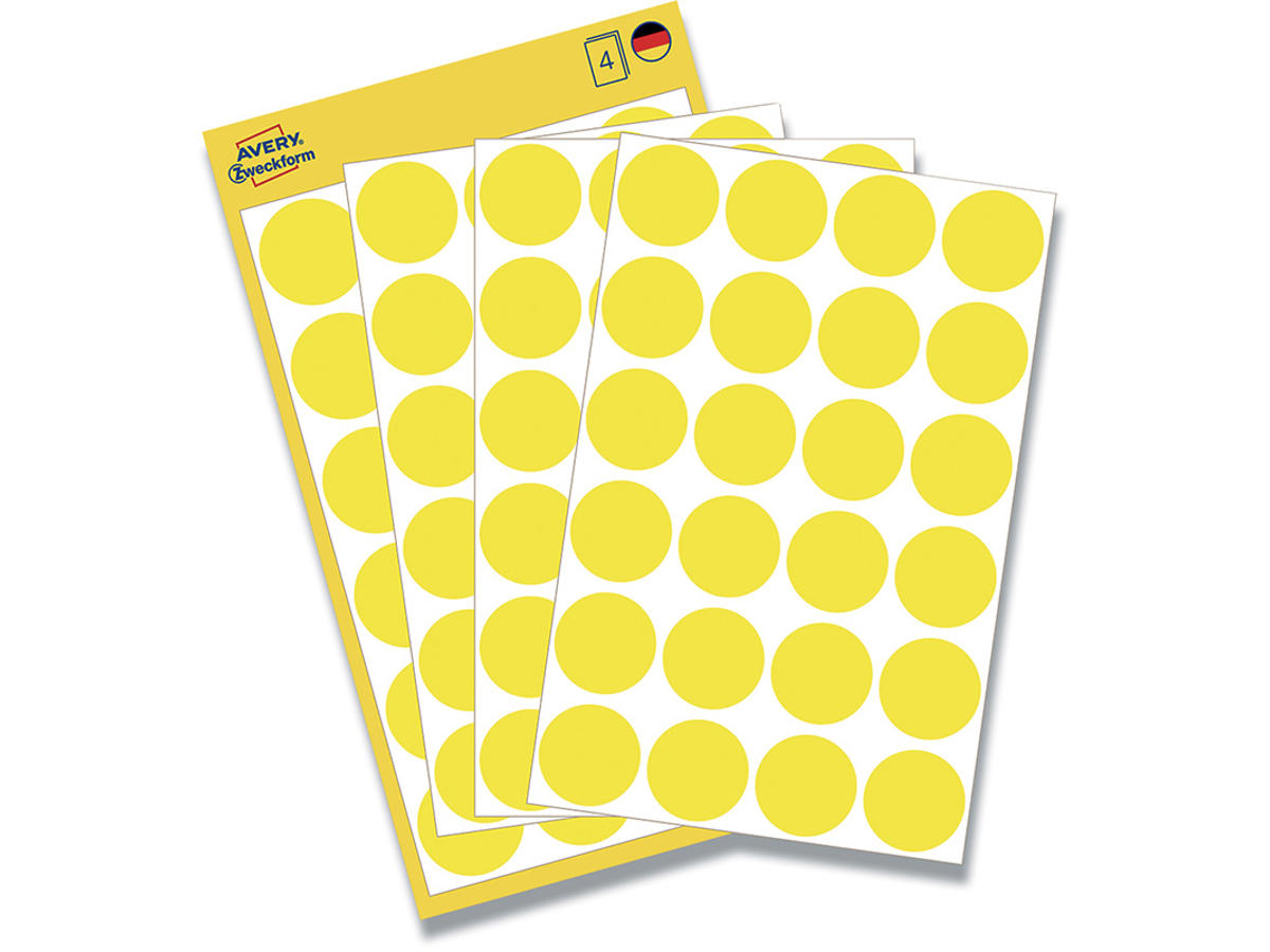 Permanentklæbende farvekodingsdots Til markering, Ø 18 mm, gul