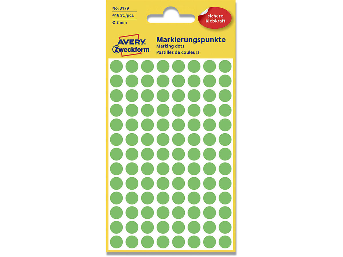 Permanentklæbende farvekodingsdots - Til markering, Ø 8 mm, klar grøn