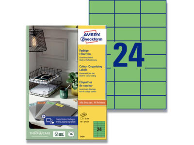 Etiketter, 105x37 mm, Grøn, 1600 etiketter i alt, Avery