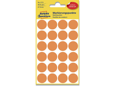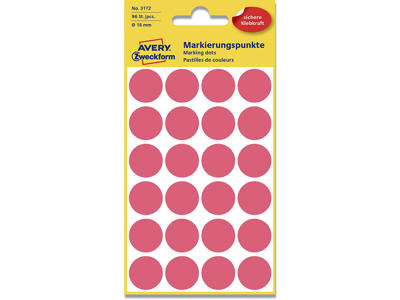 Etiketter, Ø18 mm, Neon rød, 96 etiketter i alt, Avery