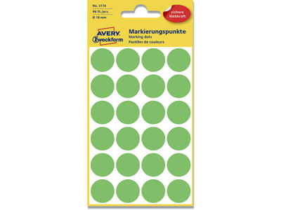Etiketter, Ø18 mm, Neon grøn, 96 etiketter i alt, Avery