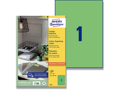 Etiketter, 210x297 mm, Hvid, 30 etiketter i alt, Avery