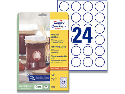 Etiketter, Ø40 mm, Hvid, 240 etiketter i alt, Avery