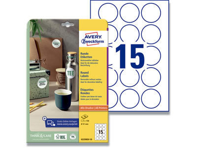 Etiketter, Ø80 mm, Hvid, 60 etiketter i alt, Avery