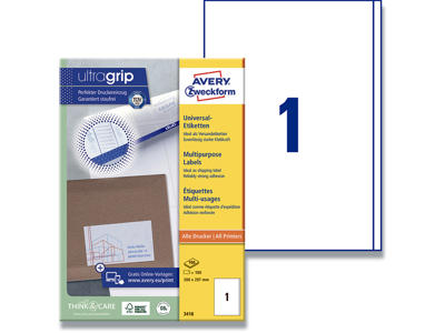 Etiketter, 105x148 mm, Hvid, 400 etiketter i alt, Avery Ultragrip