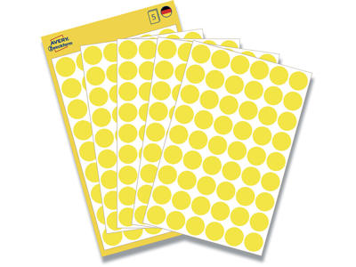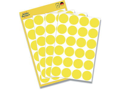 Etiketter, Ø8 mm, Gul, 416 etiketter i alt, Avery
