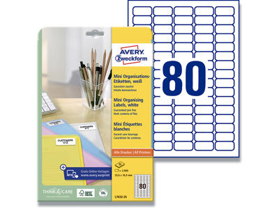 Etiketter, 30x50 mm, Hvid, 750 etiketter i alt, Avery
