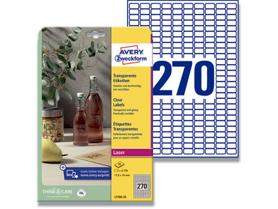 Etiketter, Ø80 mm, Transparent, 150 etiketter i alt, Avery