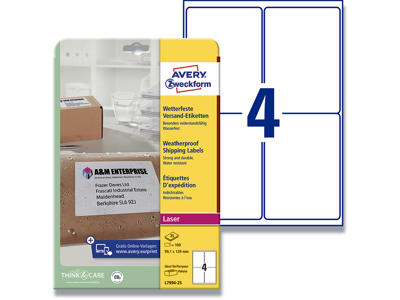 Etiketter, 99.1x139 mm, Hvid, 40 etiketter i alt, Avery Ultra Resistant
