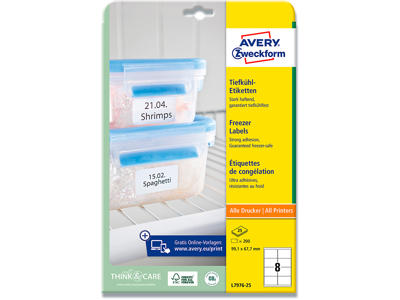 Etiketter, 63.5x33.9 mm, Hvid, 600 etiketter i alt, Avery Dybfrost