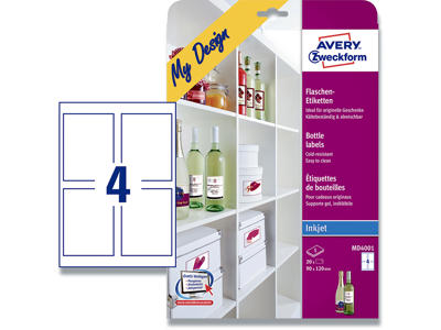 Flaskeetiketter, Hvid, 90x120 mm, 20 etiketter i alt, Avery
