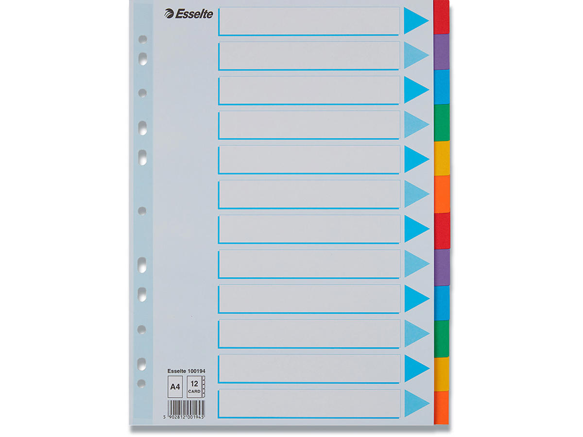 • 12 farvede faner til nem inddeling