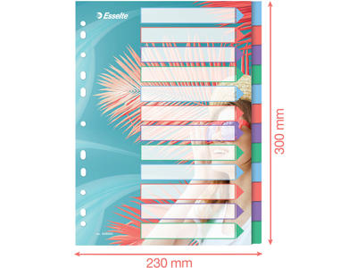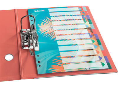 Tag naturens lyse farver til dig for at skabe en positiv arbejdsplads med Colour'Breeze-serien fra Esselte. Designet til at holde dig organiseret og motiveret, mens du studerer eller arbejder, og den moderne finish og de afslappende farver vil få dig til at drømme om dit næste eventyr. Esselte Colour'Breeze A4 register er stærke og holdbare faneblade til opdeling af dokumenter i ringordnere og brevordnere. Disse transparente registre til brug med A4-mapper og brevordnere har 12 flerfarvede PP-faneblade, der gør det nemt og hurtigt at sortere og søge i dine mapper. Forbladet på mappens register er lavet af karton og har masser af plads til at tilføje titler og beskrivelser. De fås i forskellige størrelser fra 5 til 20 faner og er udført i det friske og moderne Colour'Breeze-design med præg. En frisk brise i dit liv!
