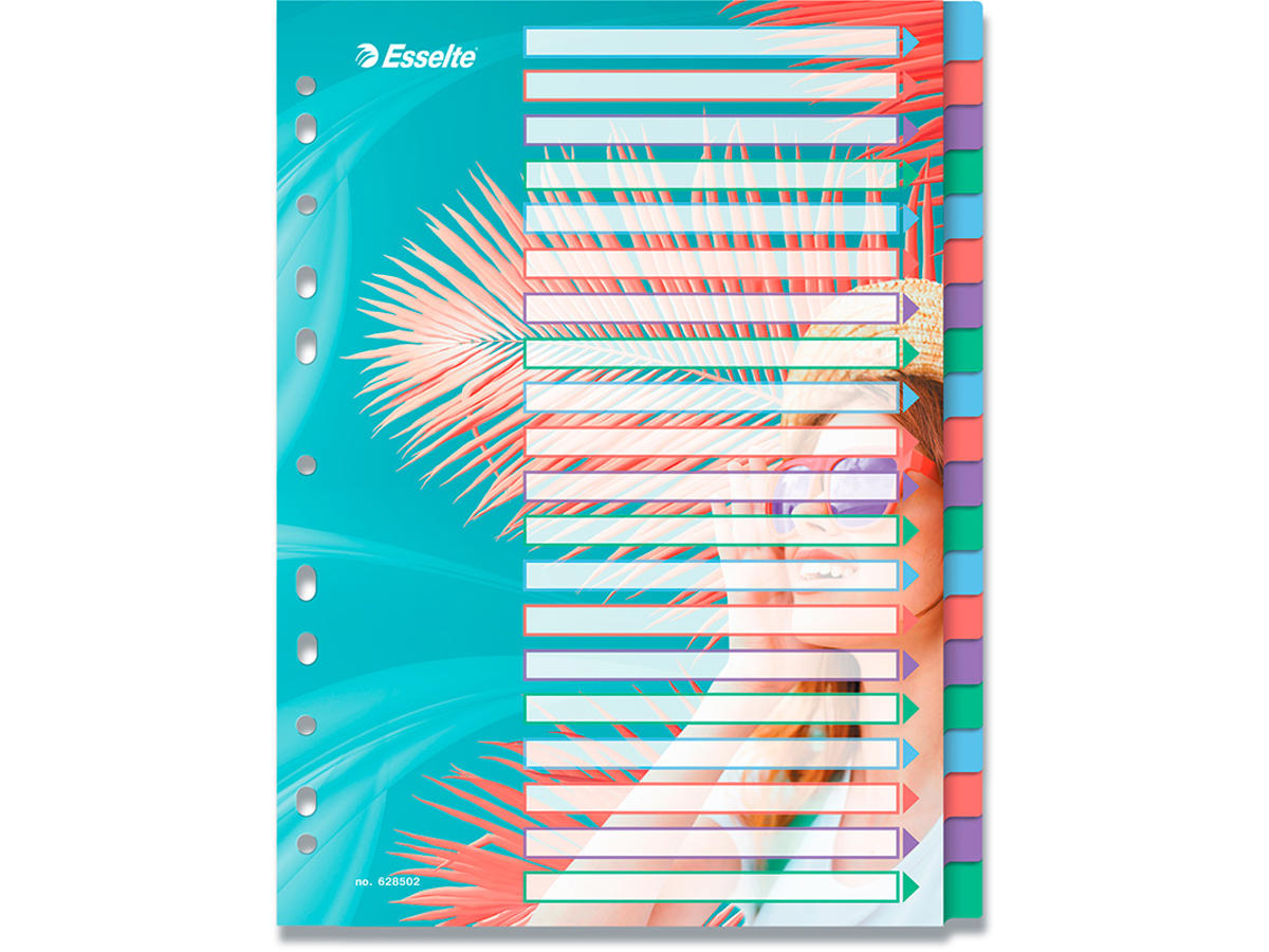 Tag naturens lyse farver til dig for at skabe en positiv arbejdsplads med Colour'Breeze-serien fra Esselte. Designet til at holde dig organiseret og motiveret, mens du studerer eller arbejder, og den moderne finish og de afslappende farver vil få dig til at drømme om dit næste eventyr. Esselte Colour'Breeze A4 register er stærke og holdbare faneblade til opdeling af dokumenter i ringordnere og brevordnere. Disse transparente registre til brug med A4-mapper og brevordnere har 20 flerfarvede PP-faneblade, der gør det nemt og hurtigt at sortere og søge i dine mapper. Forbladet på mappens register er lavet af karton og har masser af plads til at tilføje titler og beskrivelser. De fås i forskellige størrelser fra 5 til 20 faner og er udført i det friske og moderne Colour'Breeze-design med præg. En frisk brise i dit liv!