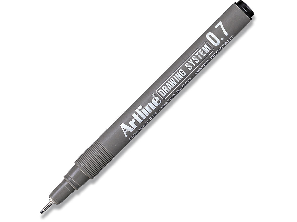 Artline Tech Drawing Pen har en superfin spids som gør den velegnet til al almindelig skrivning, tegning, teknisk tegning, illustrationer og grafisk design. Spidsen har metalforstærket krave, som gør den perfekt til at tegne med i forbindelse med lineal og skabelon. Artline Tech Drawing Pen har rillet greb langt nede på pennen, hvilket giver et godt og solidt greb ved brug. Det vandfaste pigmenterede blæk er velegnet til de fleste materialer. Den syrefrie, vandbaserede pigmentblæk i Artline technical drawing pen er vandafvisende og lysbestandig. Pennens spids sørger for en ensartet skrift bredde. Behageligt greb for god tegnekomfort.
