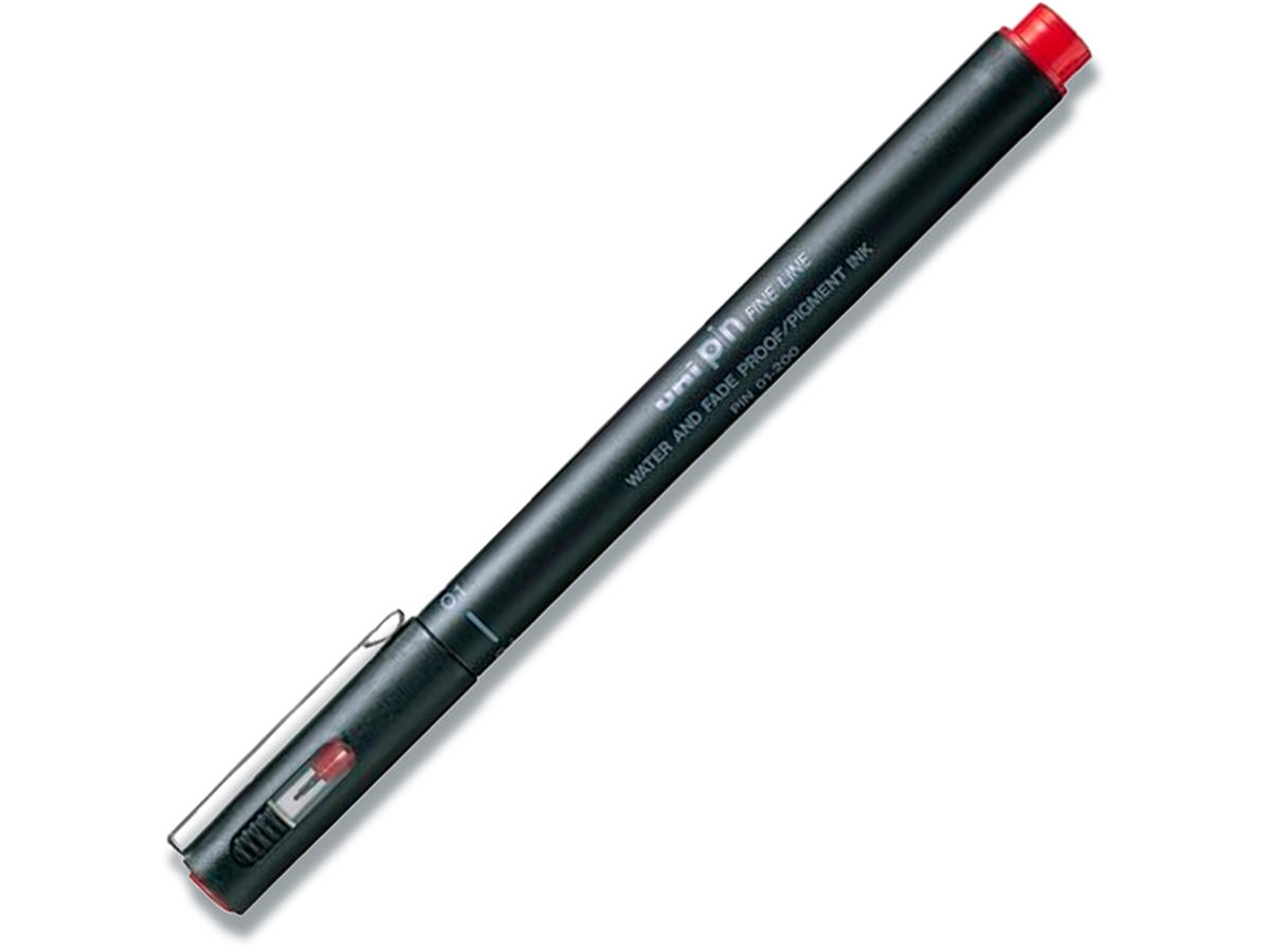 Fineliner, Rød, 0.1 mm, 1 stk, uni pin 200