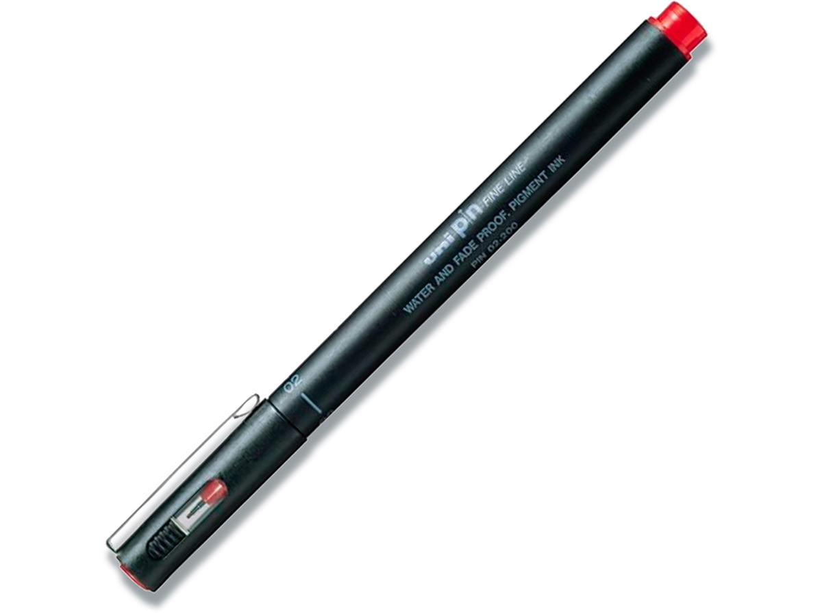 Fineliner, Rød, 0.2 mm, 1 stk, uni pin 200