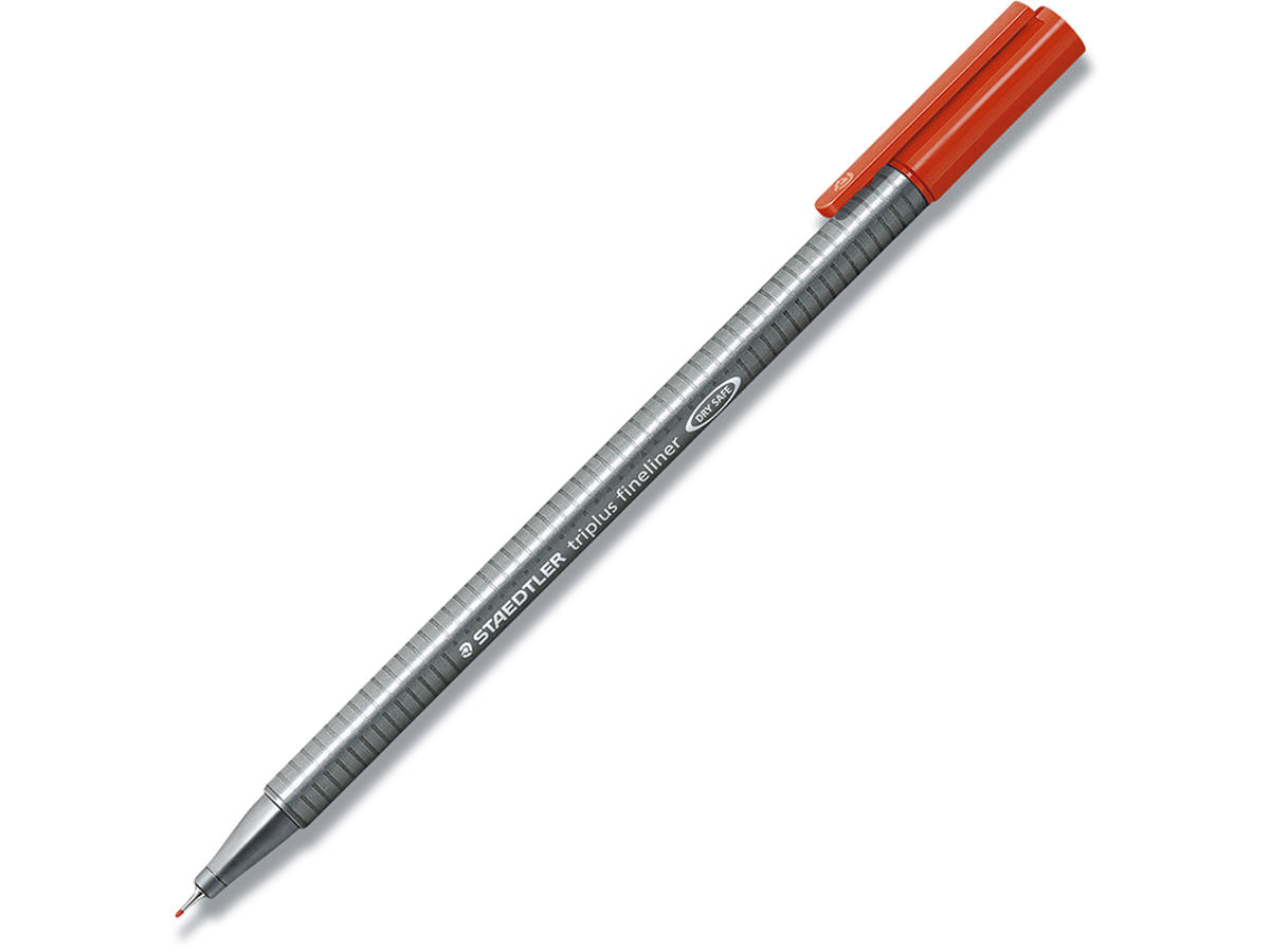 triplus® fineliner med superfin forstærket metalspids i ergonomisk trekantet form til tegning, skrivning, farvelægning, scrapbooking, kortskrivning og meget andet. Finelineren kan ligge uden hætte i dagevis uden at udtørre og har en lang levetid. Den har vandbaseret blæk og kan nemt vaskes ud af de fleste tekstiler. Automatisk trykudligning forhindrer pennen i at lække i ekstreme højder - fx ombord på fly. Stregbredde 0.3 mm.