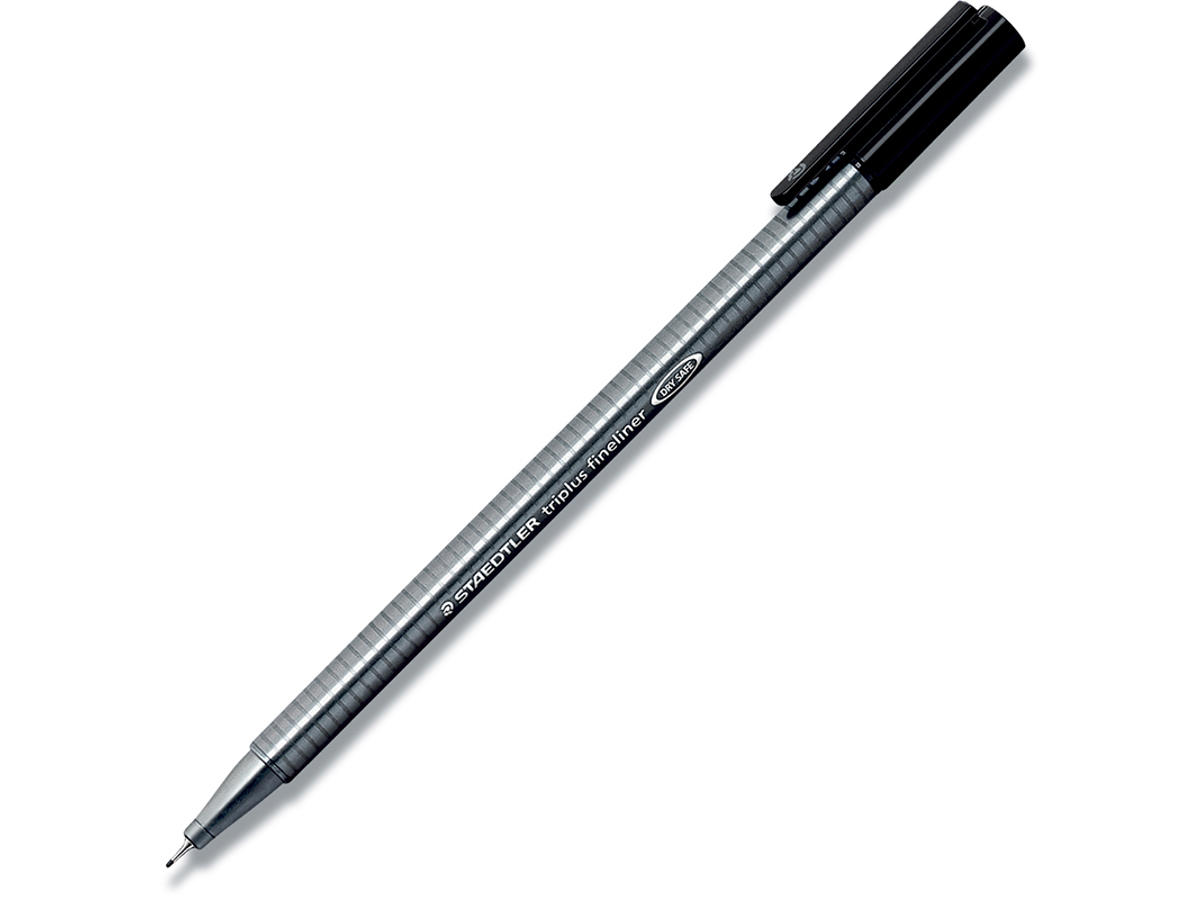 triplus® fineliner med superfin forstærket metalspids i ergonomisk trekantet form til tegning, skrivning, farvelægning, scrapbooking, kortskrivning og meget andet. Finelineren kan ligge uden hætte i dagevis uden at udtørre og har en lang levetid. Den har vandbaseret blæk og kan nemt vaskes ud af de fleste tekstiler. Automatisk trykudligning forhindrer pennen i at lække i ekstreme højder - fx ombord på fly. Stregbredde 0.3 mm.