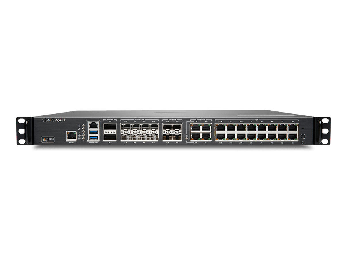 SonicWall NSSP 10700. Firewall-gennemstrømning: 42 Gbit/sek., SSL VPN-throughput: 22,5 Gbit/sek., IPS/IDS gennemløb: 28000 Mbit/s. Varmeafgivelse: 529,57 BUT/t. Sikkerhedsalgoritmer: 3DES, MD5, 128-bit AES, DES, 192-bit AES, SHA-1, 256-bit AES, SHA-256, SHA-384, SHA-512. Administrationsprotokoller: CLI, SSH, Web UI, REST APIs, Understøttede netværksprotokoller: BGP4, OSPF, RIPv1/ v2, static routes, policy‑based routing. Administrationsplatform: SonicOS 7.0.1