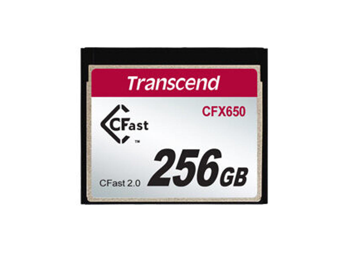 Transcend CFX650. Kapacitet: 256 GB, Flashkort type: CFast 2.0, Intern hukommelsestype: MLC, Læsehastighed: 510 MB/s, Skrivehastighed: 370 MB/s. Produktfarve: Sort