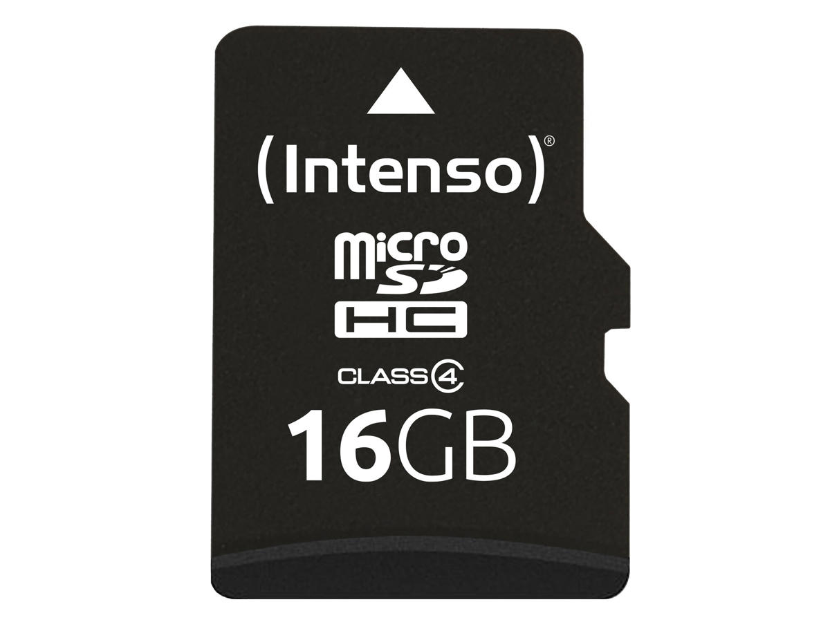Intenso 3403470. Kapacitet: 16 GB, Flashkort type: MicroSDHC, Flash-hukommelse klasse: Klasse 4, Læsehastighed: 20 MB/s, Skrivehastighed: 5 MB/s. Beskyttelsesfunktioner: Støvresistent, Ridseresistent, Produktfarve: Sort