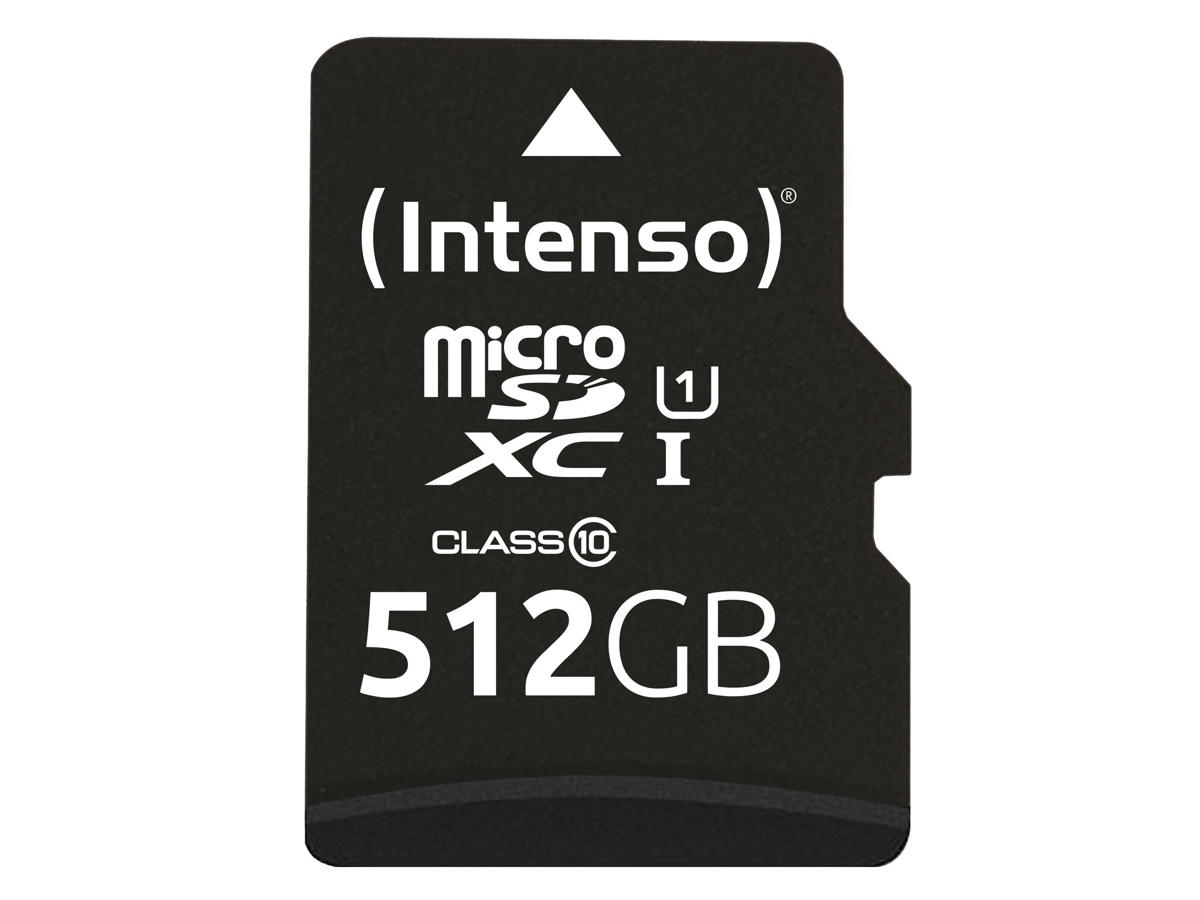 Intenso microSD 512GB UHS-I Perf CL10| Performance. Kapacitet: 512 GB, Flashkort type: MicroSD, Flash-hukommelse klasse: Klasse 10, Intern hukommelsestype: UHS-I, UHS hastighedsklasse: Class 1 (U1). Beskyttelsesfunktioner: Stødresistent, Temperaturbestandigt, Vandtæt, Røntgenbestandig, Produktfarve: Sort