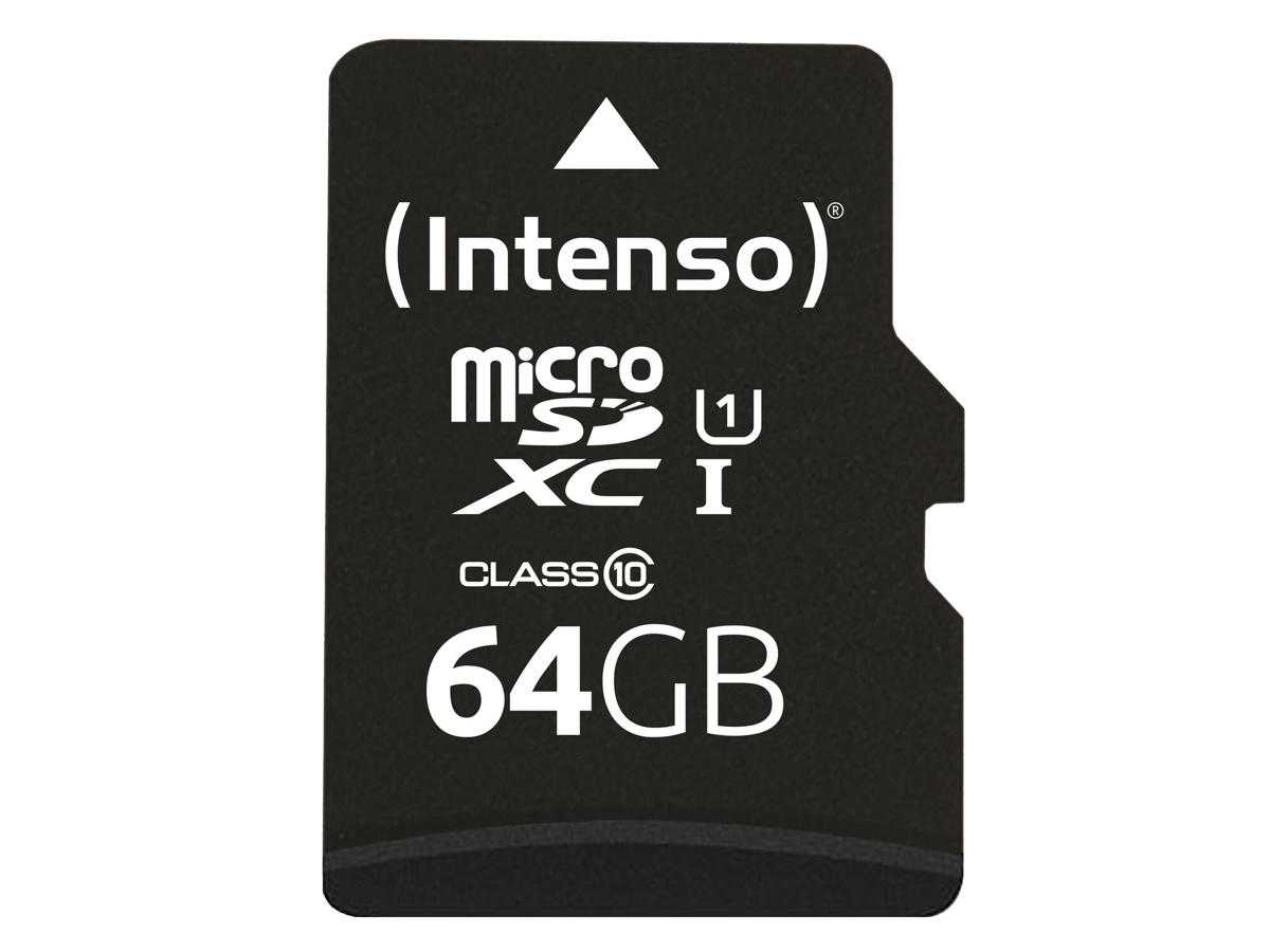 Intenso 3423490. Kapacitet: 64 GB, Flashkort type: MicroSDXC, Flash-hukommelse klasse: Klasse 10, Intern hukommelsestype: UHS-I, Læsehastighed: 90 MB/s, UHS hastighedsklasse: Class 1 (U1). Beskyttelsesfunktioner: Stødresistent, Temperaturbestandigt, Røntgenbestandig