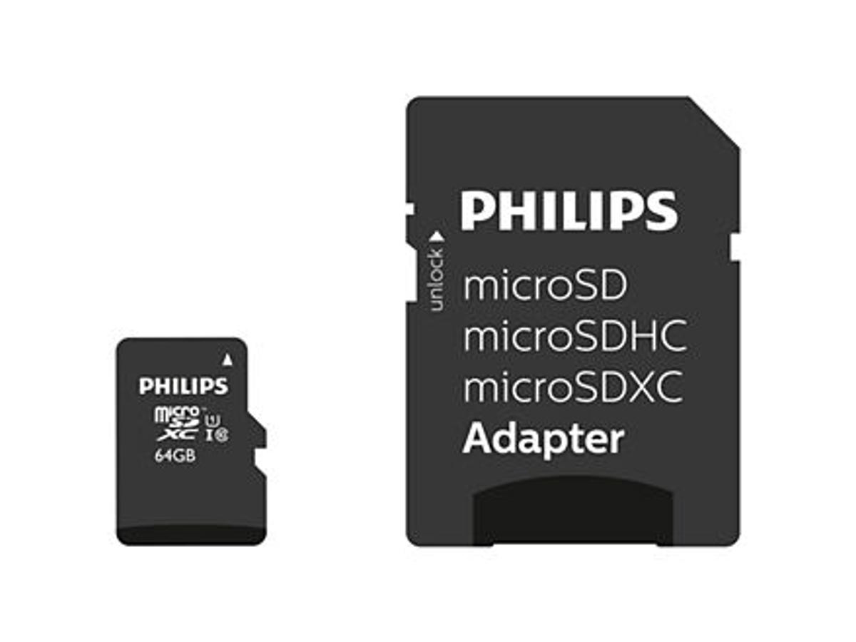 Philips Class 10 UHS-I U1 microSD memory cards offer the right performance for applications that require a high writing speed, such as Full HD video recording.