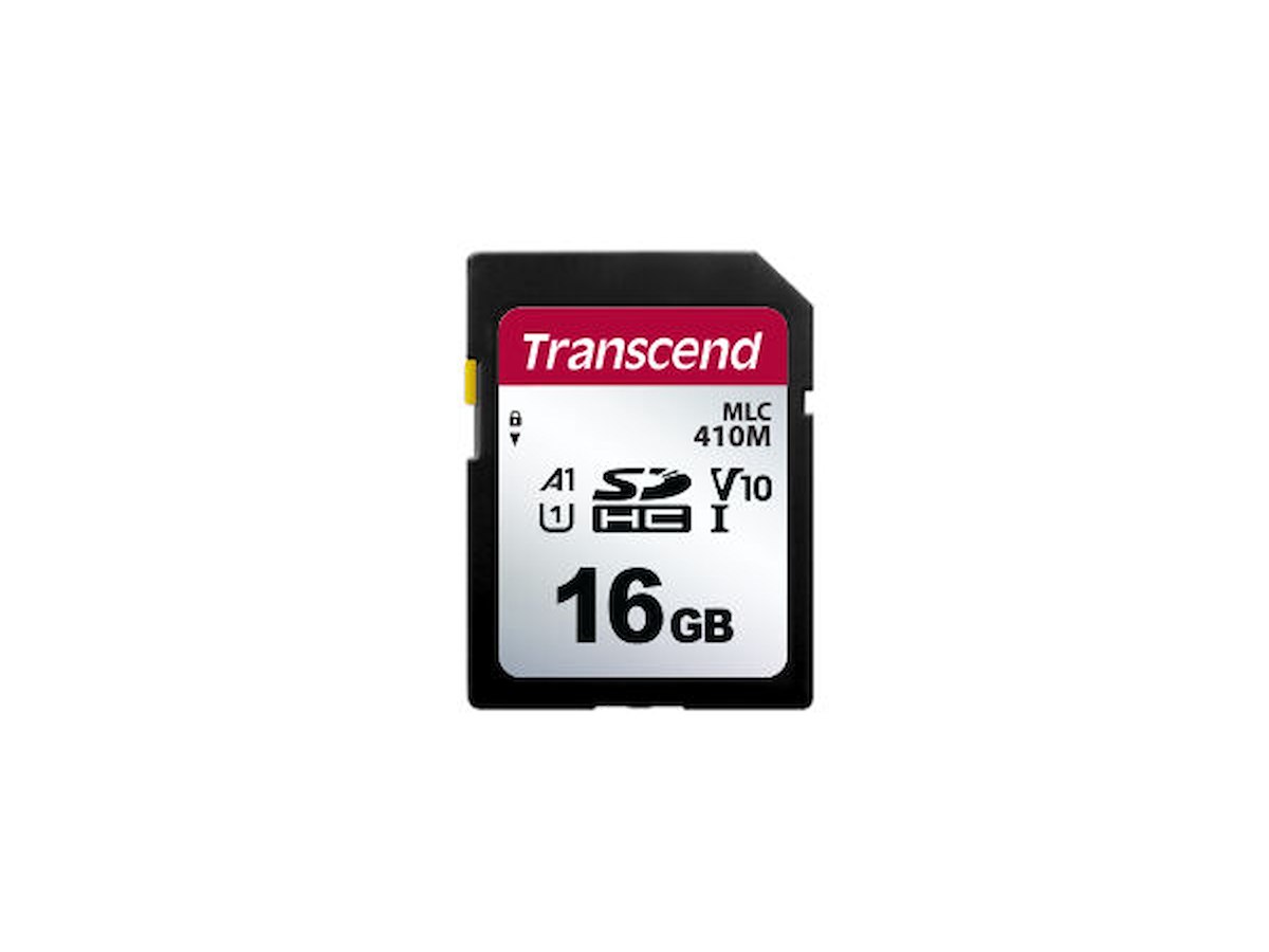 Transcend 410M. Kapacitet: 16 GB, Flashkort type: SDHC, Flash-hukommelse klasse: Klasse 10, Intern hukommelsestype: MLC, Læsehastighed: 95 MB/s, Skrivehastighed: 20 MB/s, UHS hastighedsklasse: Class 1 (U1), Videohastighedsklasse: V10