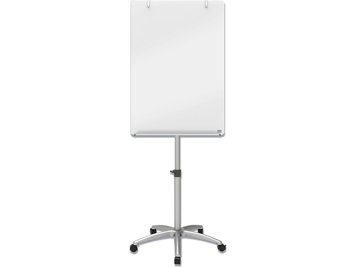Nobo mobile flipover med glastavle gør dine ideer bemærkede! Moderne, stilfuldt design med højdejusterbar mobil base. Passer i ethvert møderum eller kontormiljø. Kroge er inkluderet til brug sammen med Nobo flipoverblokke. Den magnetiske whiteboard glasoverflade giver ultra sletbarhed ved hyppig brug.