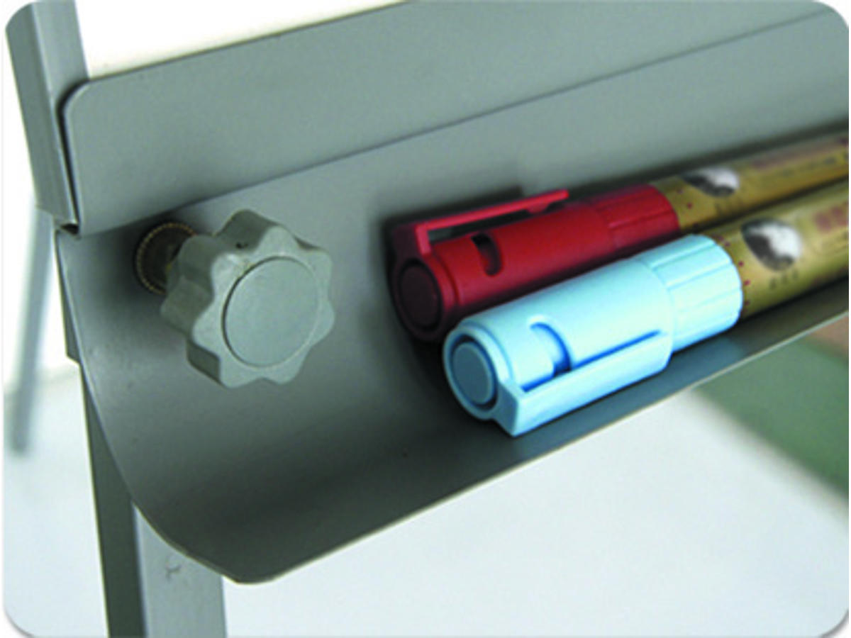 Det praktiske flipover stativ er fremstillet af sølvlakeret aluminium og har tre ben, som kan justeres i højden og en flipoverholder med klemme, som kan justeres. Overfladen består af en træplade dækket af hvidlakeret melamin, som også fungerer som whiteboard. Flipover stativet leveres med en penne holder, så du altid kan have dine penne lige ved hånden. Vælg et stativ med eller uden magnetisk skriveoverflade.