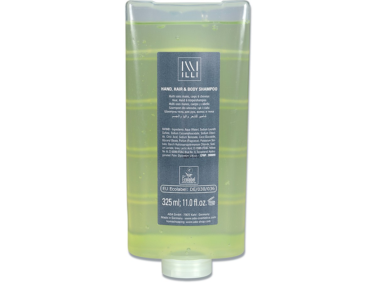 Effektivt all-in-one produkt der både kan bruges til bad og til håndvask. Vasker skånsomt hår og krop samt hænder og indeholder hudplejemiddel der sikrer, at hud og hovedbund ikke udtørrer. Særdeles velegnet til hotelværelser, svømmehaller, fitness, omklædningsrum m.m.