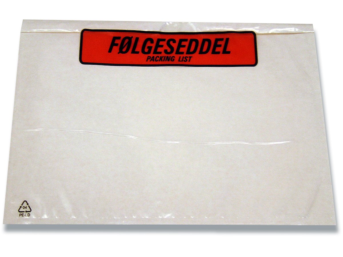 Følgeseddellommer, ''Følgeseddel''/''Packing List'', C5, 1000 lommer,