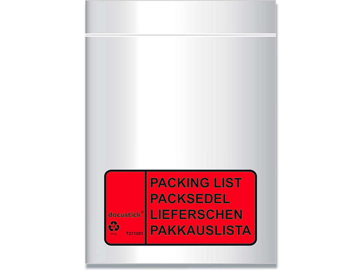 Selvklæbende plastlommer der klæbes på pakker og paller inden forsendelse effektiviserer forsendelsen. Når indholdet er emballeret, kan dokumentation og adresseoplysninger vedlægges samlet i plastlommen. • Til rutineudsendelser • Sikker og vandafvisende • En lomme til fakturaer, følgesedler og/eller adresseoplysninger • Vis indholdet eller vedlæg dokumentation og instruktioner