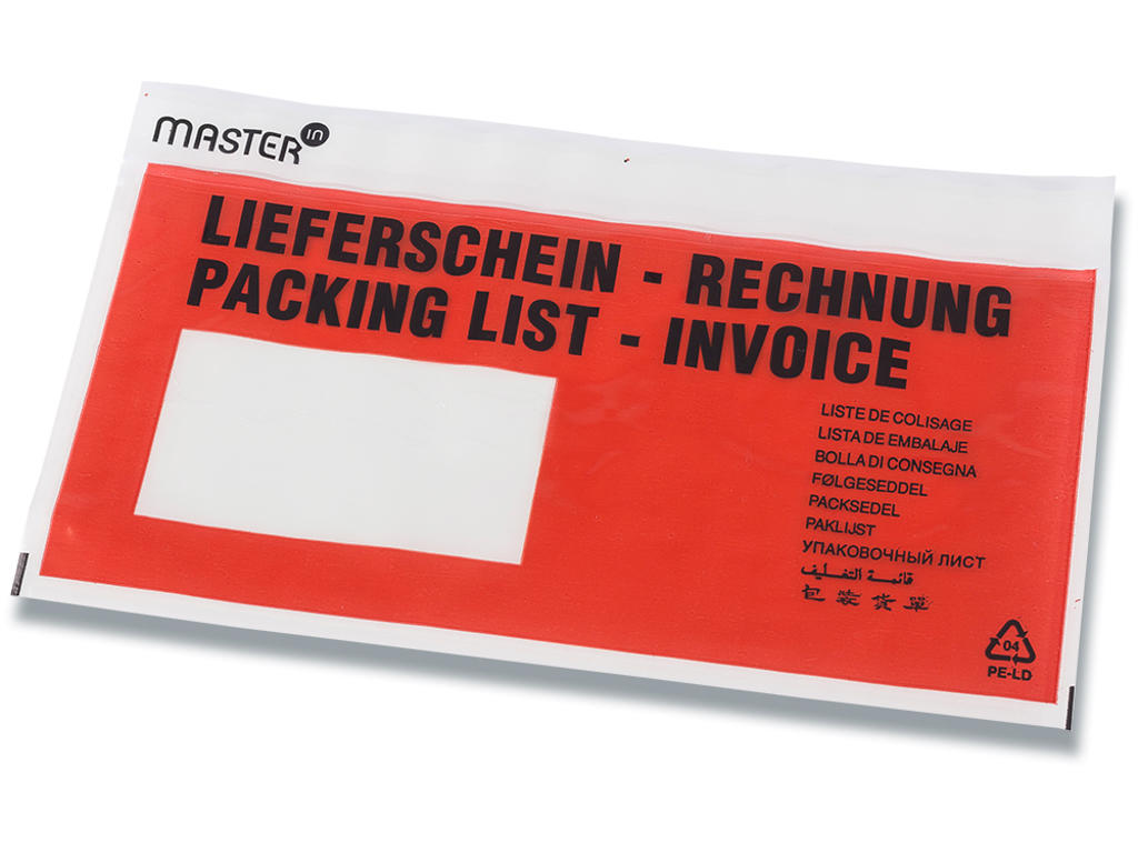 Følgeseddellommer, ''Følgeseddel''/''Faktura'' på 11 sprog, 1000 lommer, 240x117 mm, Master'In Performance