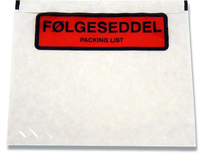 Følgeseddellommer, ''Følgeseddel''/''Packing List'', A7, 1000 lommer,