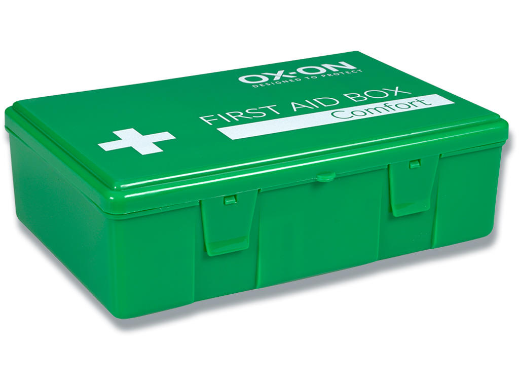 OX-ON First Aid Box Comfort er førstehjælpskassen til dig, der vil kunne yde førstehjælp, uanset hvor du er. Den praktiske plastkasse er fyldt med de vigtigste remedier, du kan få brug for ved både små og større ulykker. OX-ON First Aid Box Comfort er oplagt at have i fx skurvognen, sommerhuset eller i bilen.