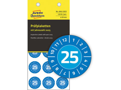 Etiketter, Ø20 mm, 2025 Blå, 120 etiketter i alt, Avery Inspektion