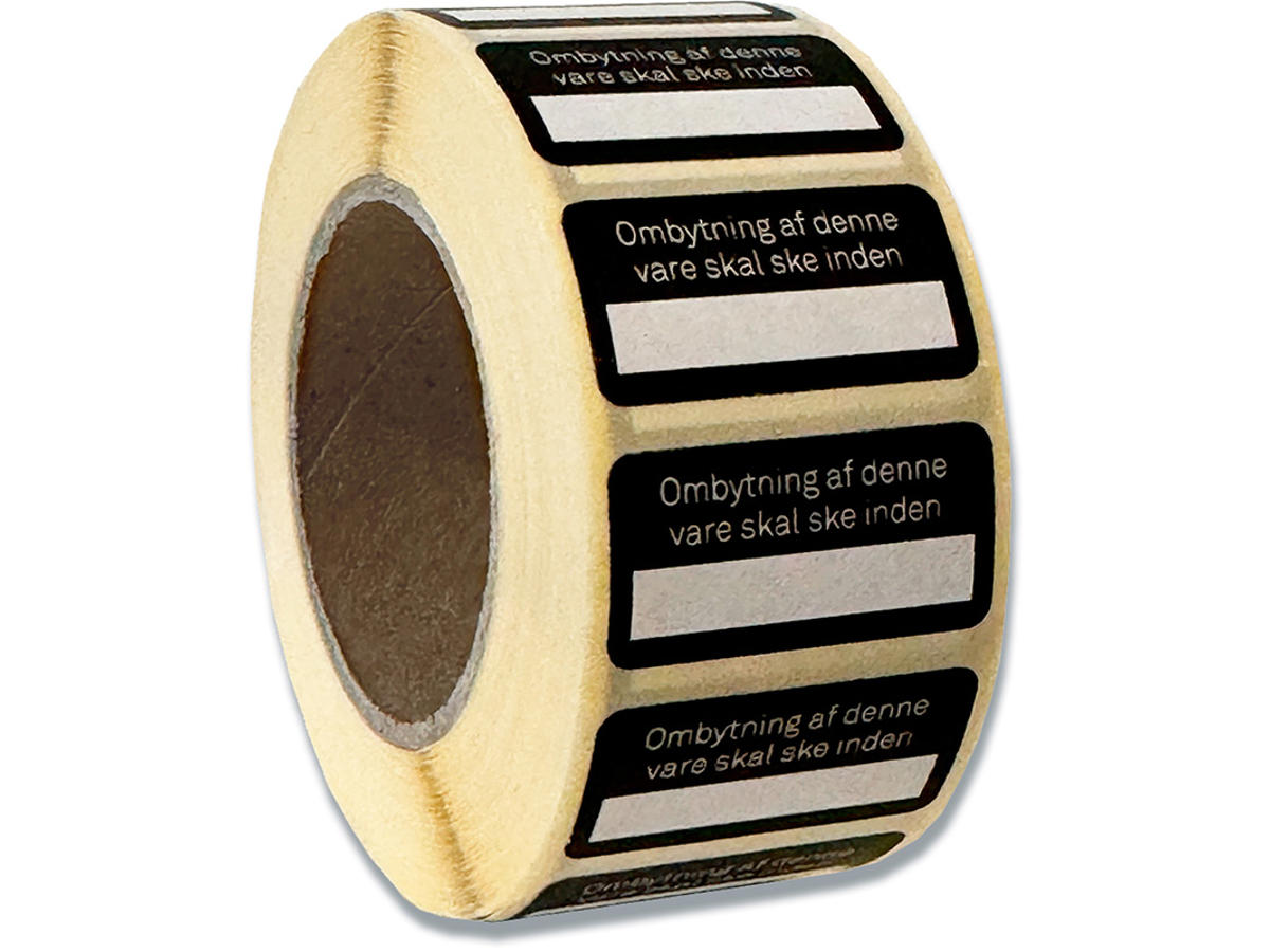 Tekst: ''Ombytning af denne vare skal ske inden''