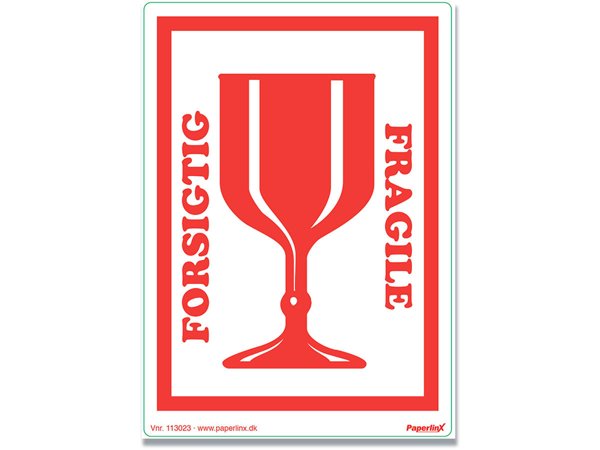 Fortrykt ''FRAGILE'' ''FORSIGTIG'' Vinglas