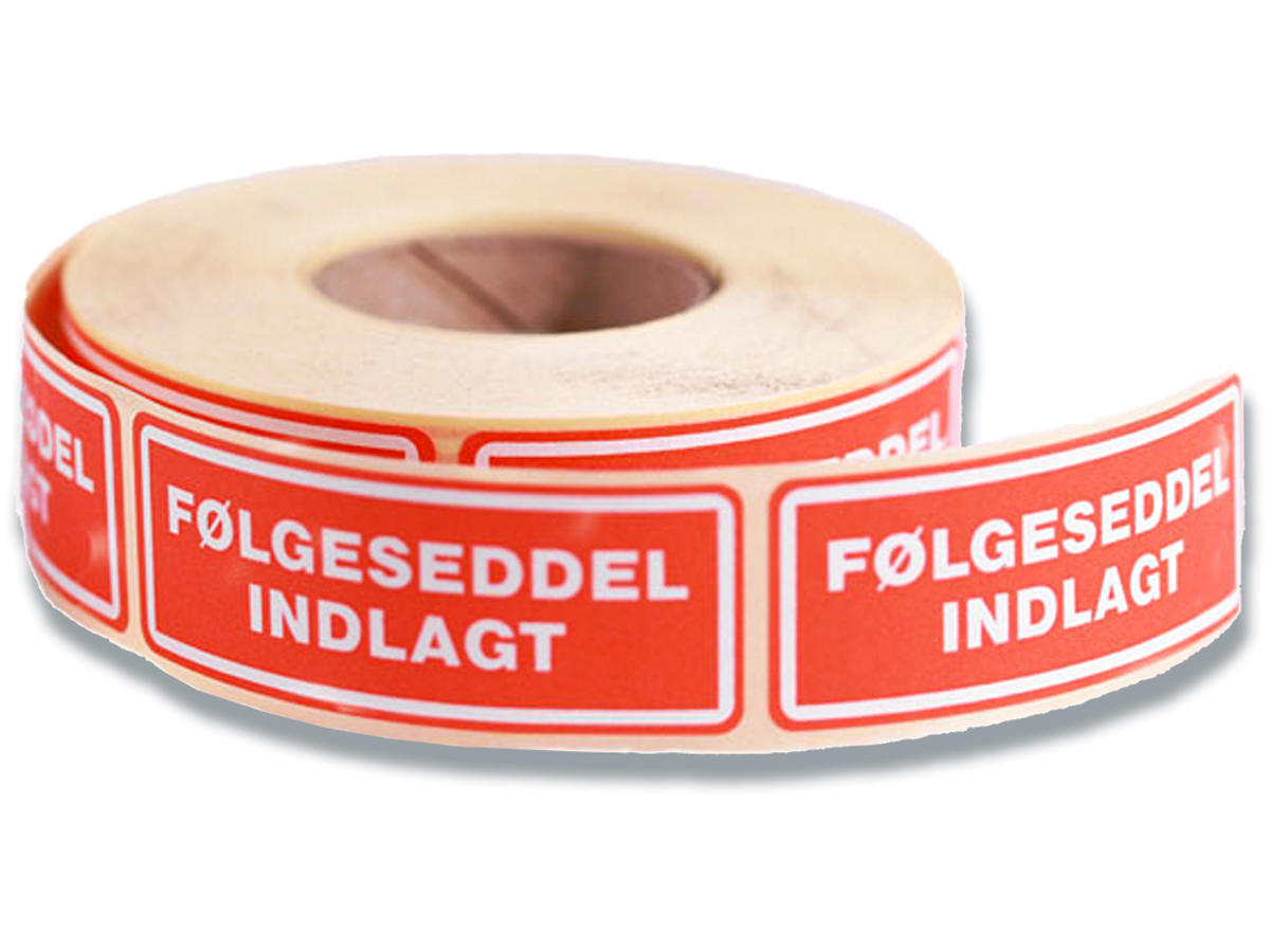 Etiketter, 24x64.6 mm, Rød og hvid, 500 etiketter i alt, BNT ''Følgeseddel indlagt''