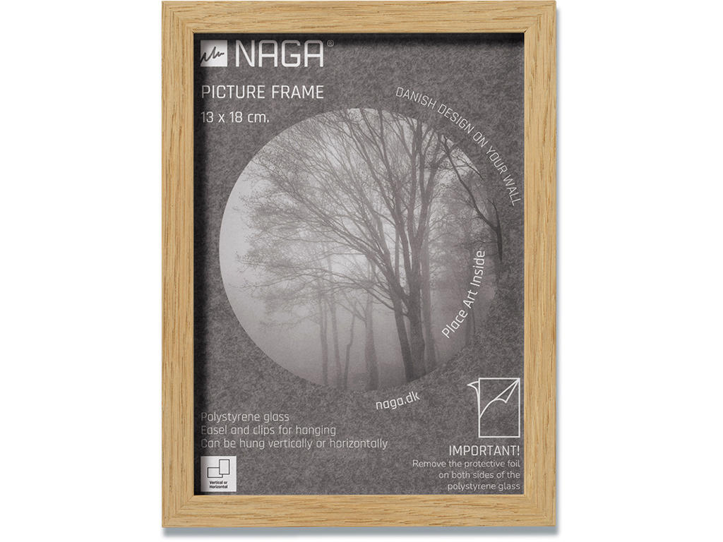 13x18 ramme i massivt egetræ. Moderne ramme med plexiglas udført i massivt egetræ. Den flotte ramme passer til et billede på 13x18 cm. Trærammen måler 1,2 cm i bredden og 2,2 cm i dybden og giver et stilfuldt udtryk. Den fine ramme har metalophæng bagpå, så du nemt kan hænge den op. Dertil kommer denne ramme med et staffeli, så du kan stille den på en flad overflade såsom et bord eller skænk. Rammen er udført så du både kan hænge den vertikalt og horisontalt, på den måde kan du skabe den helt rette billedvæg. En tidløs ramme, som du kan få glæde af i mange år. Indram billeder, din egen eller andres kunst og skab et flot design på dine vægge.