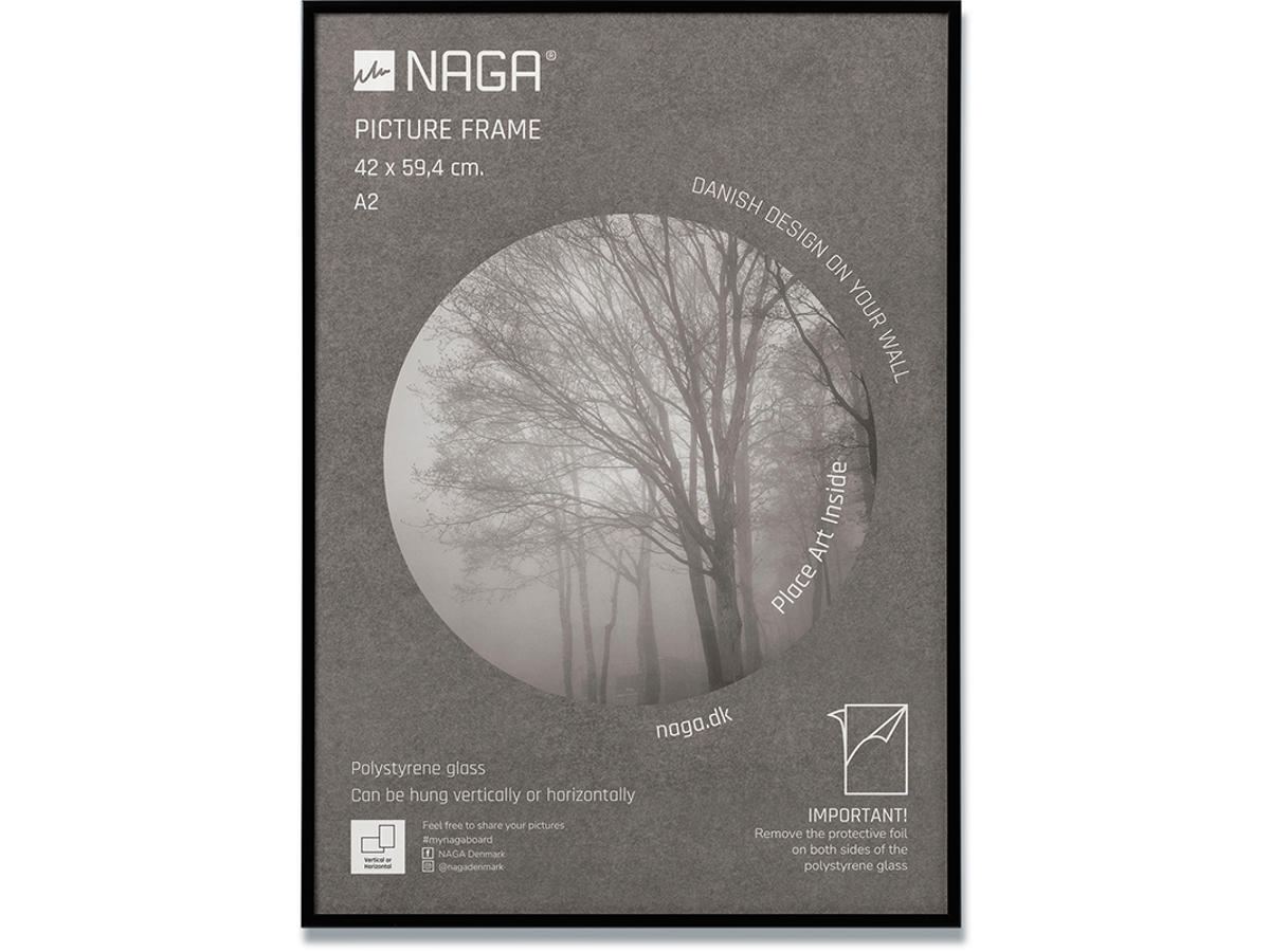 A2 sort ramme i aluminium. Stilfuld sort ramme med plexiglas udført i aluminium. Den flotte ramme passer til et billede på 42x59,4 cm, (hvad der svarer til en A2 plakat). Selve rammen måler 0,9 cm i bredden og 1,4 cm i dybden hvilket giver et stilfuldt udtryk. Den fine ramme har metalophæng bagpå, så du nemt kan hænge den op. Rammen er udført så du både kan hænge den vertikalt og horisontalt, hvilket giver dig mulighed for at skabe den helt rette billedvæg. En flot sort ramme, som du kan få glæde af i mange år. Indram billeder eller kunst og skab et stilfuldt design på dine vægge.