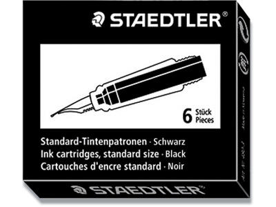 Fyldepen refill, Patroner, Sort, 6 stk pr pakke, Staedtler 480