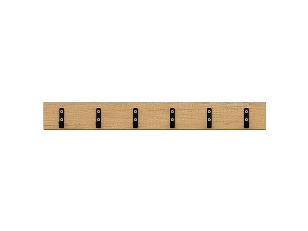 Knagerække type 101 med 6 stk. korte kroge. Sorte kroge, RAL 9005 og liste i birk højtrykslaminat, bredde 1000 mm.