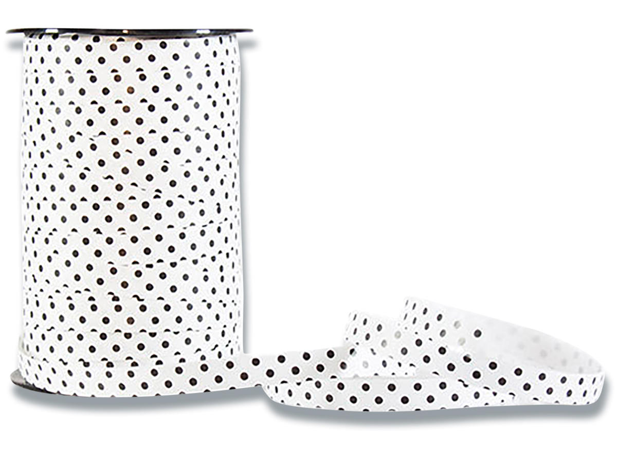 Gavebånd, PP, 10mm x 225m, Hvid med sorte prikker, Roliba Poly Glat Prik