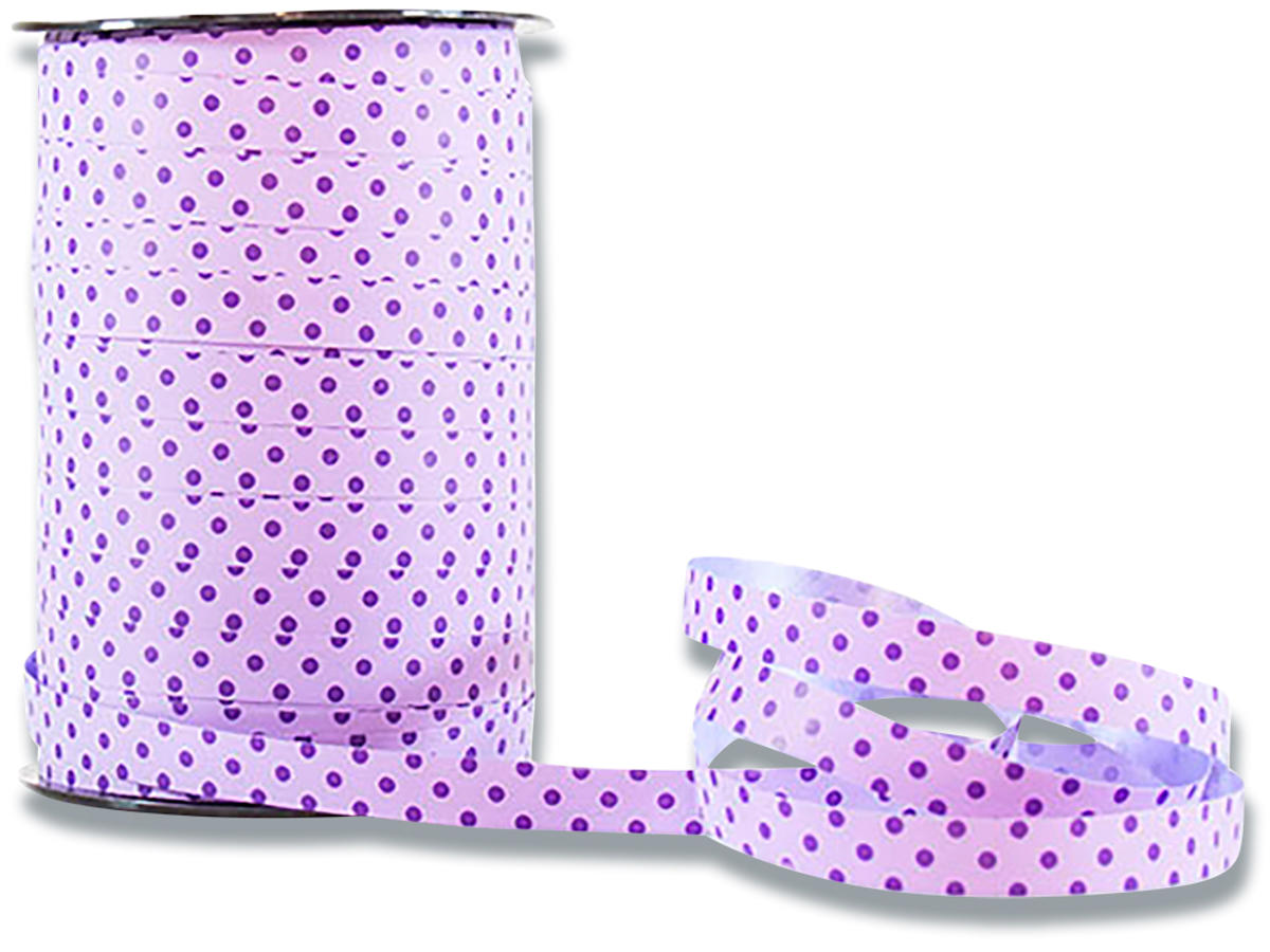 Gavebånd, PP, 10mm x 225m, Lyselilla med mørkelilla prikker, Roliba Poly Glat Prik