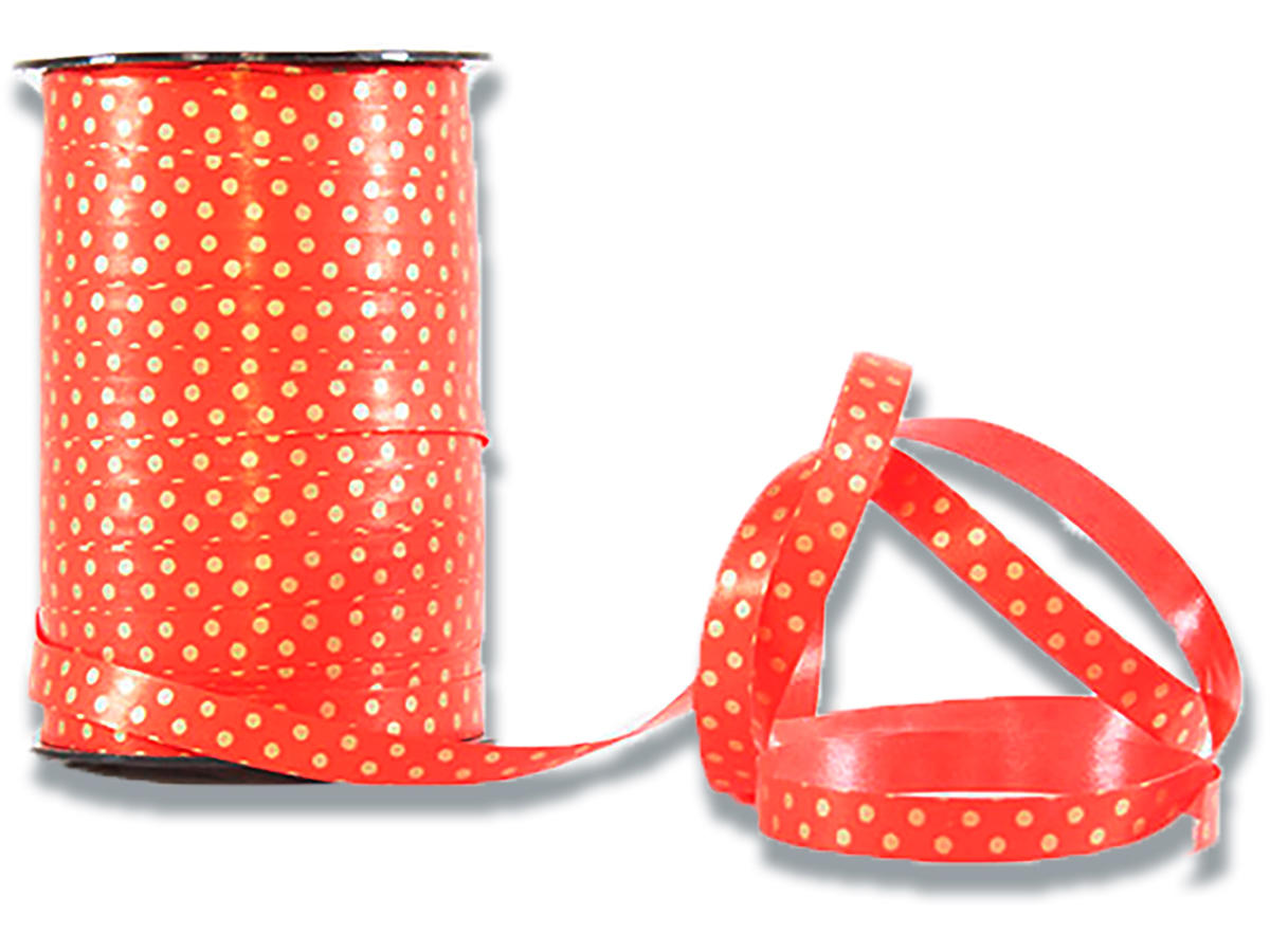 Gavebånd, PP, 10mm x 225m, Rød, Roliba Poly Glat Prik