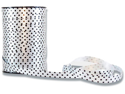 Gavebånd, PP, 10mm x 225m, Sort med sølv print, Roliba Poly Glat Juvel